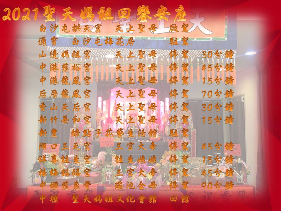 聖天媽祖徒步回鑾期程